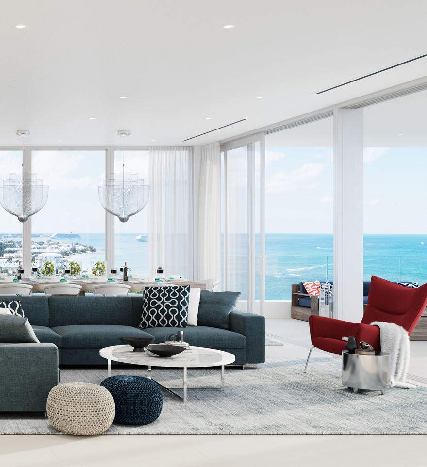 For truly elevated living, Lacovia is confidently crowned with six sun-drenched penthouses and four sub-penthouses, providing the pinnacle of open-plan living with unprecedented views across the Caribbean Sea.